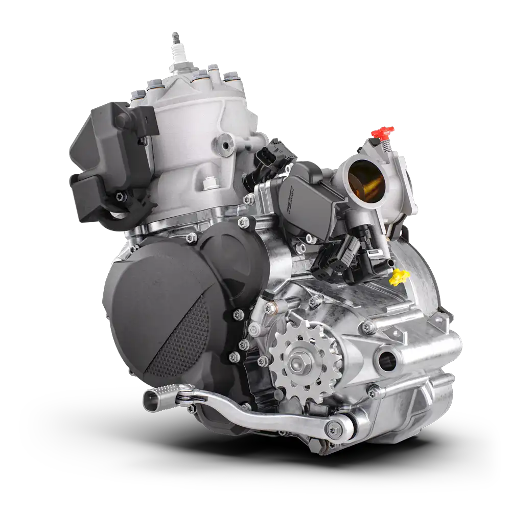 Con la inyección electrónica de gasolina se logra un comportamiento excelente. Junto con la inyección electrónica de combustible y una válvula de escape en los modelos KTM SX, lo que permite una mayor potencia utilizable en toda la gama de revoluciones. Una potencia más suave significa una mejor tracción. ¡Una mejor tracción significa entrar en el paraíso del holeshot!