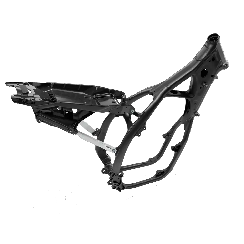 Prepárate para un asalto total. Las KTM SX y SX-F han recibido importantes actualizaciones de chasis directamente de los motos oficiales de los equipos KTM Factory Racing. Para empezar, la zona alrededor del soporte del amortiguador trasero se ha racionalizado, con soportes de motor y recortes para mejorar la flexión del chasis. La zona delantera del chasis tiene un grosor de paredes óptimo y con unos soportes de motor renovados.